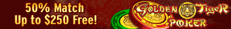 Golden Tiger Poker Golden Tiger Poker was launched in October of 2002 and is still one of the smaller, but more active poker rooms on the 'net. Bonuses / Promotions First-time depositors - receive 50% bonus up to $200 Software / Graphics The interface and the “play” of Golden Tiger is consistent, the number of seats at a table varies from 2 for 1 on 1 Hold'em, to 8 seats for 5 and 7 card stud and 10 players to each Texas/Omaha Hold'em, tables. The lobby allows you to view open tables, by the type of game. Each game list allows you to view the stakes for the game, the number of people playing and when relevant and the number of people waiting to play. You'll be able to choose the betting limits you're comfortable with. Texas Hold'em stakes range from $.50/$1 to as much as a $50/$100 table. Once you’re in there, you'll see a table and chairs - but only names for players, not Avatars (people) like at most poker rooms. Right click a player’s name for more info on them and the ability to keep notes. Games All the games are great if you like that particular version of poker. Texas Hold'em is typically the most popular variation, with 7 Card Stud following closely behind. Payments / Cashouts / Security Golden Tiger also has a $250 prize for highest Texas Hold'em hand every day! Customer Support Players can contact the support centre via e-mail, toll free phone or Live Chat 24/7. The staff are friendly and helpful and can usually answer any questions you have on the spot but if you do come up with something they can't answer immediately, they promise to get back to you within 24 hours of your call. |