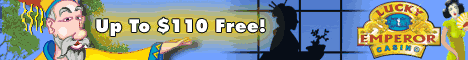 Lucky Emporer Casino Lucky Emperor Casino offers an honest bonus scheme, is part of a respected and reliable casino network and is excellent fun to play at. Casino Rewards is known as a market leader in online casino loyalty programs. Bonuses / Promotions Lucky Emperor offers all new players $10 free on download, and a matching bonus of $100 on your first deposit of $100. As they are part of the Casino Rewards network you can expect to receive your bonuses within 2 hours of registration which is pretty much unbeatable at online casinos. Software / Graphics Lucky Emperor has a nice fresh look, and the casino is very easy to use. You will also find their website impressive and well organized should you need to refer to it for help. Most of the games have a good sophisticated look and sound. The software at Lucky Emperor comes under the well respected banner of Microgaming and connections are quick and reliable. Games Lucky Emperor have a diverse and exciting range of games available including some of the most exciting progressive jackpots and Nickel Slots where players can lay down bets for as little as 1 cent a spin. One look at the video poker will confirm that Microgaming do in fact offer the best video poker online and of course there are all the favorite table games including Blackjack, Craps and roulette. All number generators and pay out rates at the casino are independently reviewed and the results of these can be viewed on the website. Payments / Cashouts / Security There are a number of payment methods available at Lucky Emperor and with the casino being under the banner of both Microgaming and Casino Rewards, players can be guaranteed that all transactions are completely safe. After your initial withdrawal, the process should take no longer than 3 working days. Customer Support Customer support is taken very seriously at Lucky Emperor Casino and there are fully trained staff available 24/7 to answer any questions that may arise. Players will find the support staff friendly and helpful and all queries are dealt with quickly. |