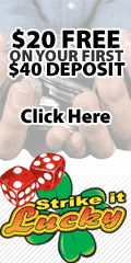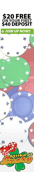 Strike It Lucky Casino If you’re looking for a quick casino where you can avoid lengthy downloads and installations, Strike It Lucky Flash Casino is definitely worth a go. You will be playing your favorite games almost instantly! Bonuses / Promotions Strike it Lucky Casino offer a $20 bonus on your first purchase of $40 but the real lure to this casino is that upon registration, all players get free membership to Casino Rewards, the nets premier loyalty program. Casino Rewards is a widely recognized and professional group, guaranteeing a competitive service and fantastic weekly and monthly promotions. There are also six other casino’s in the group and any VIP points that you earn can be redeemed at any of the casinos. Software / Graphics Within seconds of hitting the "Play Now" button on their website, you will find yourself looking at the lobby of the casino and answering a few simple questions to register your account. Strike it Lucky use the well respected Microgaming software and the casino is clean and easy to use as well as fast and reliable. Games Once in the casino software, you will not be disappointed by the games on offer. All the old favorites are represented, Blackjack, Video Poker, Slots, Craps, Roulette etc. A quick look at the Auditors report confirms that payout rates are all fair and above board and random number generators are being constantly monitored. With this in mind, there is certainly a fair amount of action and excitement to be had. Payments / Cashouts / Security