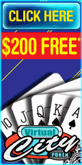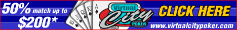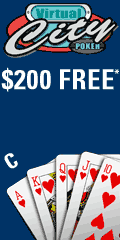 Overview Virtual City Poker is another operator of the Prima Poker Network and has been since March 2003. The benefit of playing on the network is the continual strong flow of players, a result of many poker sites all feeding through to one big room. Because of the size of Prima, they also spread a good variety of games from very low limit (easy pickings!) to high stakes pot limit and no limit (great if you’ve got the bankroll or good to just watch) Graphics / Software Call me old fashioned, but there is much that you can do to convince me that I’m anywhere but sat in front of my computer looking at cards on screen. (I’ve tried True poker, but it’s just too slow.) The graphics are clear here and your hole cards are easy to see. When the flop comes, the cards are always visible, and they even have an indicator that shows who has acted and what they did.. I did have a few issues with the software when they first introduced the Multi Table Tournament, as it always seemed to freeze and was really slow, but I think after constant calls from thousands of players, they have ironed out these glitches Cashout / Bonus The reason that I chose this site was due to the fact that there are so quite a few different sites that operate for the prima network, but Virtual city is one of the few that has the backing of a large casino group. When putting down my hard earned dollars, I feel that security of information and credit details are a huge part of where I play, and knowing that Virtual City comes under the highly professional banner of CasinoRewards and is therefore heavily monitored, I am safe in the knowledge that all is secure, and when it comes to cash out it comes safely and without hassle. The bonus was the first thing that attracted me to Virtual City, as I did not want to have to put up $100 that some of the other sites have as a minimum deposit. $30 for $30 is good for me. As well as this Virtual City offer a daily prize of $250 for the highest hand and a bad beat jackpot of a minimum $500. Customer / Support / Security Customer support is important to me as things in the online world inevitably go wrong. The Poker room shares the same support as the casinos attached to it, so there is always someone on the phone 24/7, and even though for big technical issues, the support has to contact the Prima network (why the player can’t contact Prima Poker direct, I don’t know) you usually have any questions resolved within a 24hour time frame. Most quick questions I had about my account or cashout, were answered right there on the spot. Live Games This site has 5 Card Stud !! Not many online poker rooms cover this game anymore, but as an old school player, it’s great to find a site that not only has it, but also has a whole bunch of players ready and willing to play. Virtual city has all the big games such as Holdem, Omaha and as mentioned above 5 Card and 7 Card Stud. It also has a whole spread of games with heads up action, so if you can find a willing partner, you can sit at a private table and go back and forth. Limits I’m a middle limit player so Virtual City is right up my alley, but they do have all limits, from very low 25c/50c all the way up to pot limit 50/100. A lot of people I come across say that they like the micro limit (2c/4c) games offered at other poker sites, but I find that no one is willing to lay down a hand at that level, so I’d rather stick to playing for fun than playing for such small limits. Tournaments